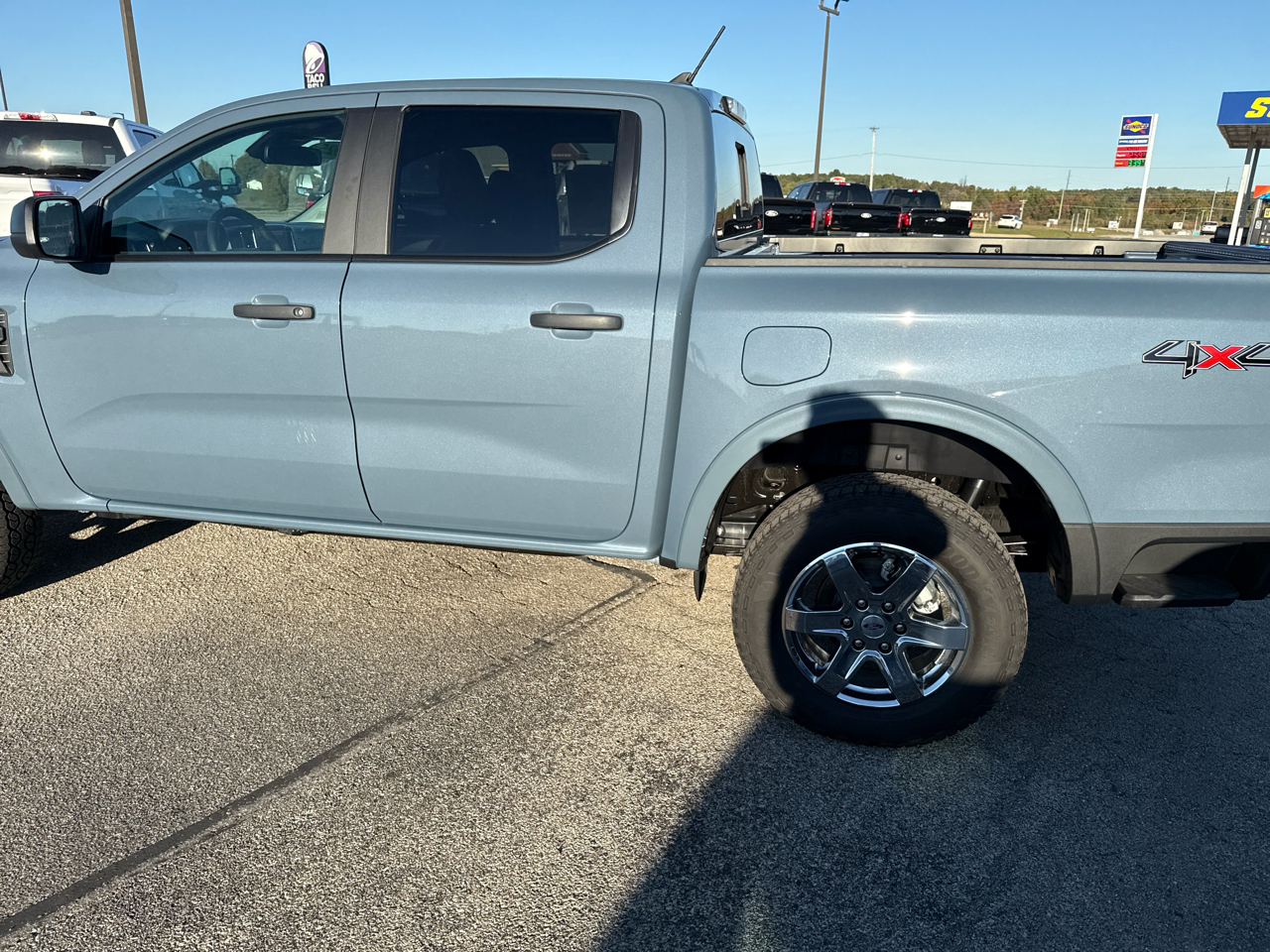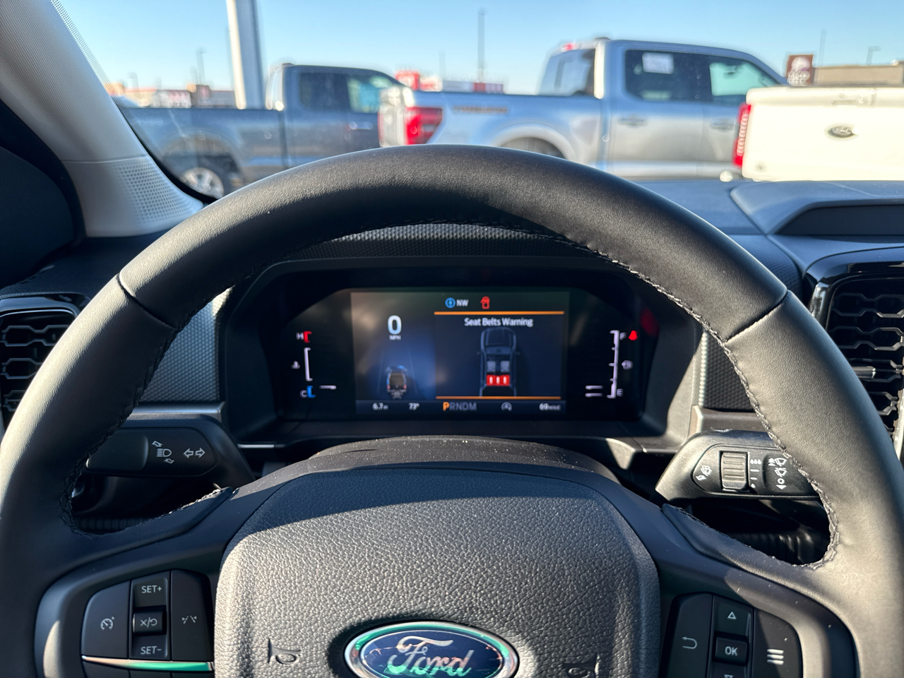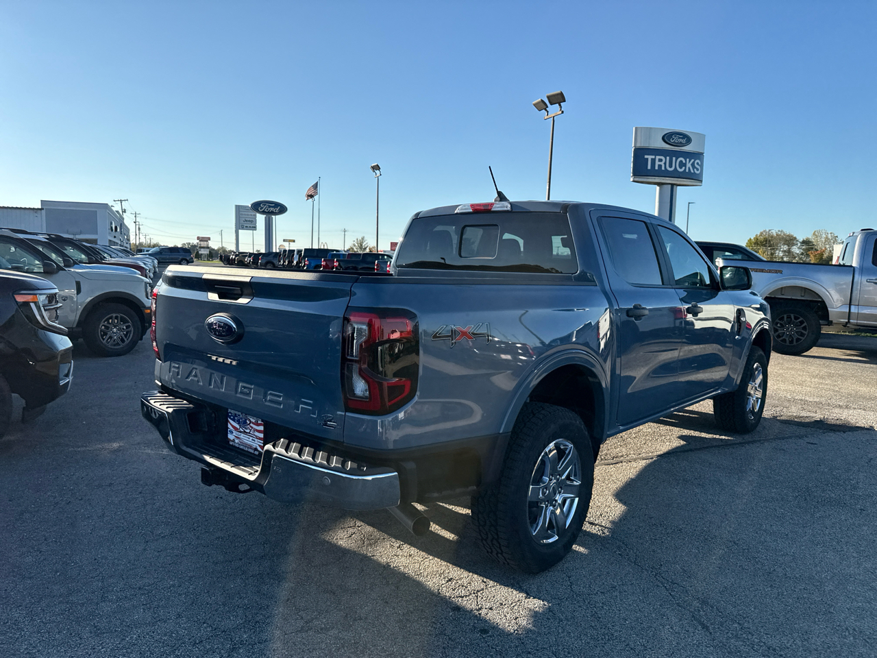 The exterior boasts a rugged yet modern design, with a sport box decal, automatic high beams, and LED brakelights for added safety. Inside, the Ranger offers a comfortable and connected driving experience with streaming audio, real-time traffic display, and a driver information center. The spacious cabin features premium materials, a leather-wrapped steering wheel, and ample storage options throughout.